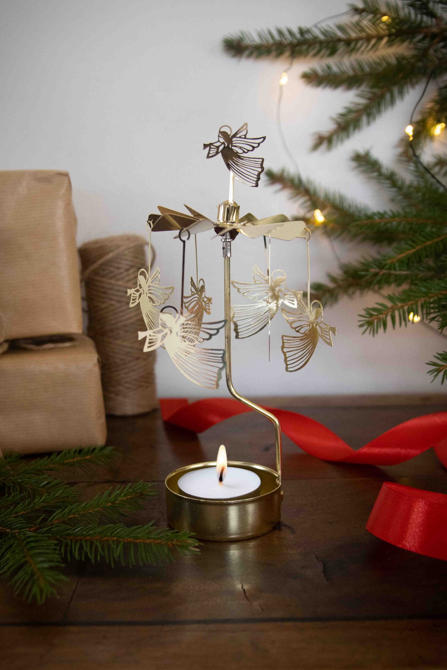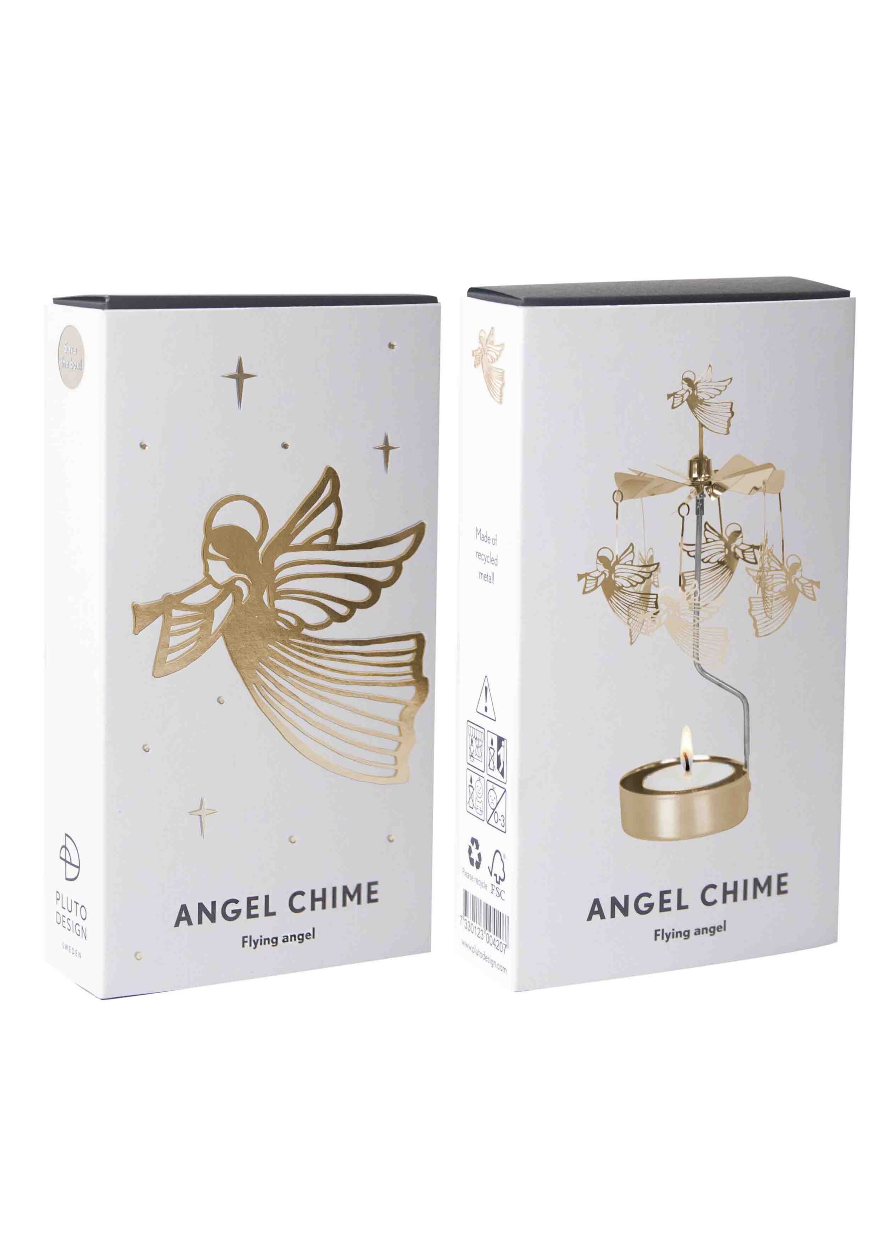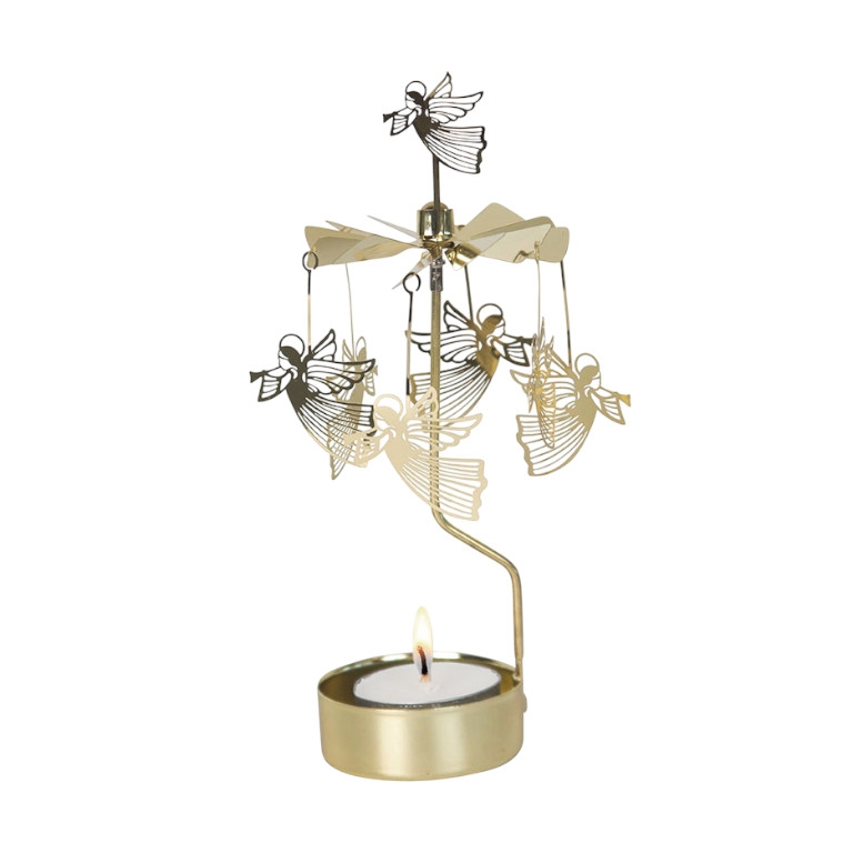 Decorate your home with our spinning angel chime with flying angels in gold metal!