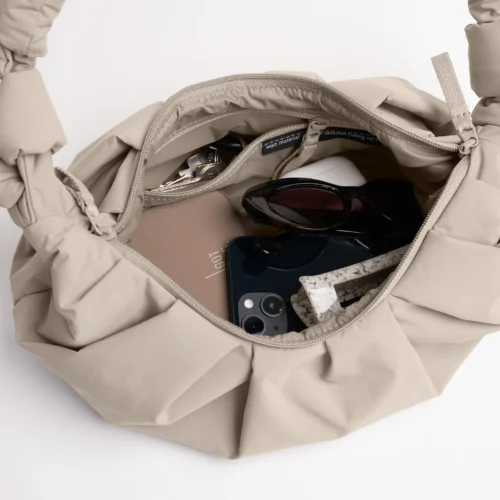 Ülipehme, mänguline ja vetthülgav kott, mis mahutab 3 liitrit ning paistab silma stiilse sõlmedetailiga õlarihmal. See väike, kuid üllatavalt mahukas kaaslane sobib igapäevaseks kasutamiseks – tõeline väike ruumiime.
