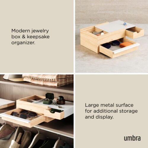 Stowit on nutikalt disainitud ehtelaegas, mis ühendab korrastatuse ja kaasaegse stiili. Erineva suurusega sahtlid ja peidetud lahtrid hoiavad ehted organiseeritult ja kaitstult, samas kui pehme kangasvooder ennetab kriimustusi ja pusasid. Tänu puhtale disainile ja puidu ning metalli kombinatsioonile sobib see suurepäraselt nii kummutile, öökapile kui ka tualettlauale. Kummijalad hoiavad kasti kindlalt paigal ega jäta pinda kahjustusi. Valmistatud taastuvast puidust ja viimistletud keskkonnasõbralikul moel.