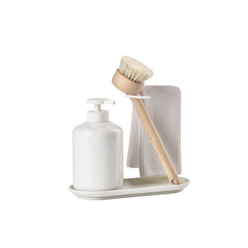 Just see, mida vajad igapäevaseks nõudepesuks – ei rohkem ega vähem. Mugav nõudepesuhari, paraja suurusega seebidosaator, sobiv köögilapp ja silikoonalus, mis hoiab kõik ilusti koos.